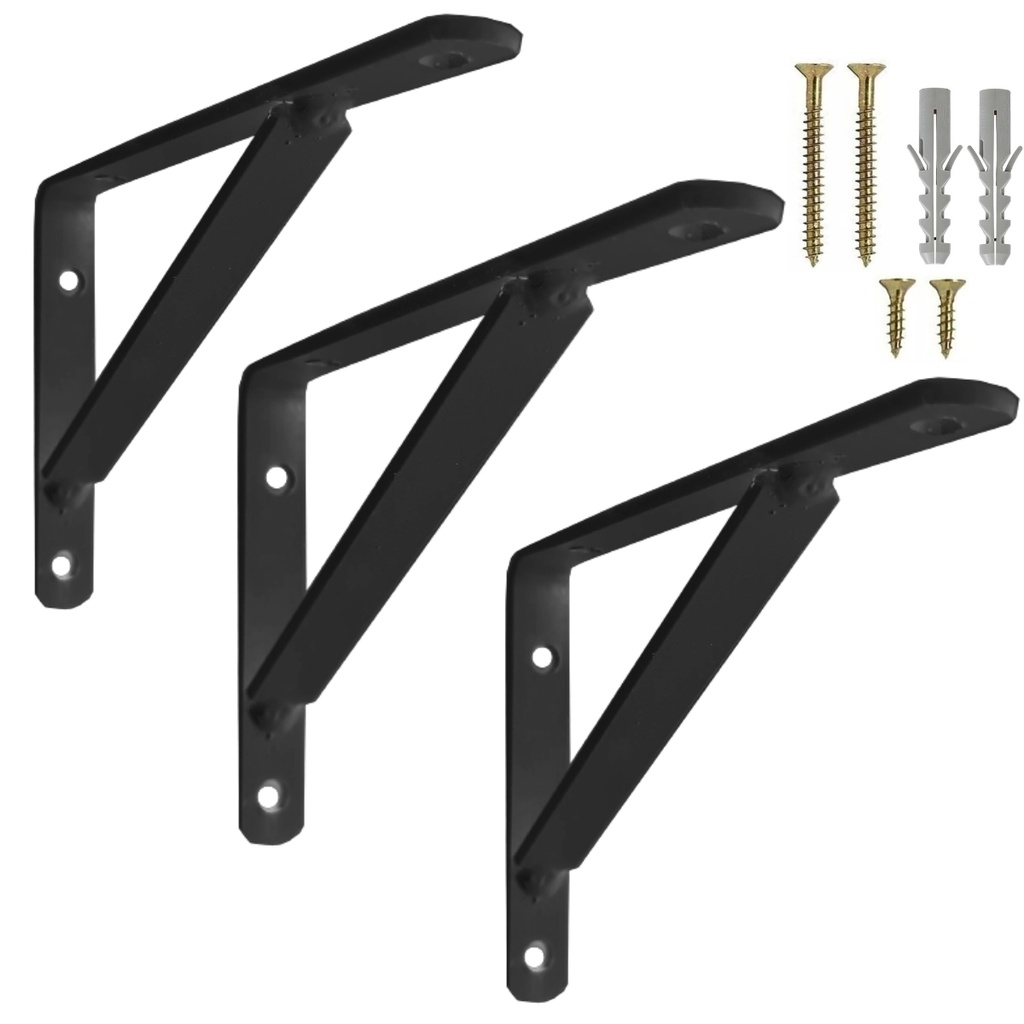 Mão Francesa Reforçada 50cm 3 un Preta Cantoneira Prateleira