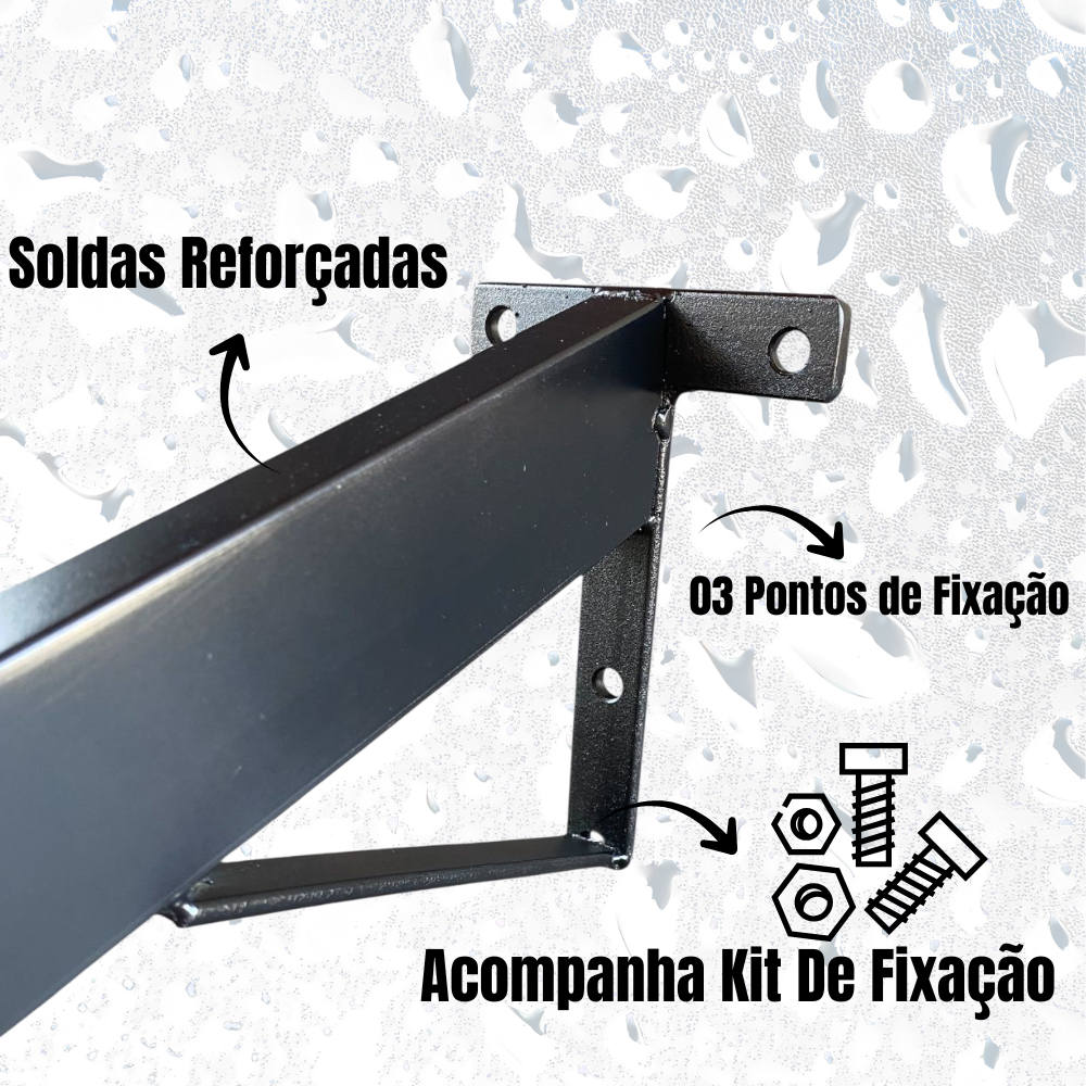 Mão Francesa Suporte Cobertura Para Telhado Kit 02 unidades Medidas: até120cm comprimento 15cm de altura 10cm de largura Metalon 50x20cm Pintura Epóxi Ângulo de 10° de caída Recomendações de uso: Verifique a carga total: calcule o peso da cobertura + carga adicional (ex: chuva, sujeira) e confirme se os suportes (80 kg cada) aguentam com segurança. Preste atenção na fixação: a resistência final depende muito da parede ou estrutura onde o suporte será instalado. Se for alvenaria fraca, madeira fina ou fachada instável, pode ser necessário reforço com barras atravessadas — como recomenda o anúncio. aquitemvantagem.com.br+1 Planeje a distância entre suportes: ideal manter cerca de 1 metro entre suporte e suporte, para distribuir bem o peso e garantir estabilidade. aquitemvantagem.com.br+1 Compre a cobertura separadamente: o kit inclui apenas os suportes. Telhas, lonas ou painéis não acompanham o produto, então separe o material de cobertura à parte.