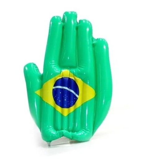 Mão Inflável com a Bandeira do Brasil. Produto de excelente qualidade Esteja pronto para torcer no jogo do Brasil com essa mão gigante, com ela você ficará mais destacado no meio da torcida - Medidas: 46 x 36cm