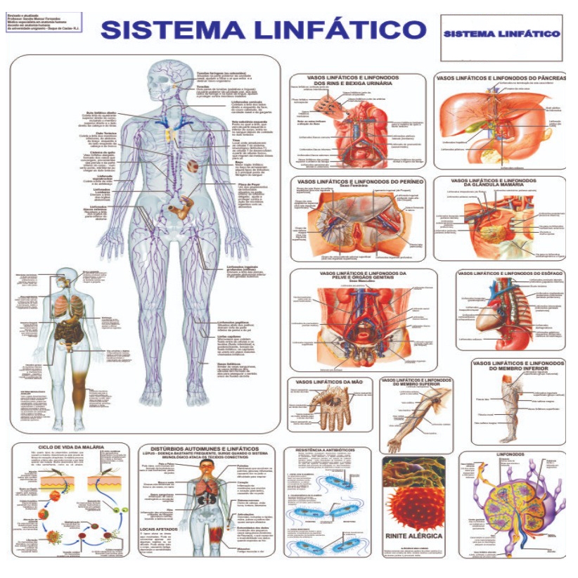Mapa Corpo Humano Sistema Linfático 120 X 90 Cm Grande