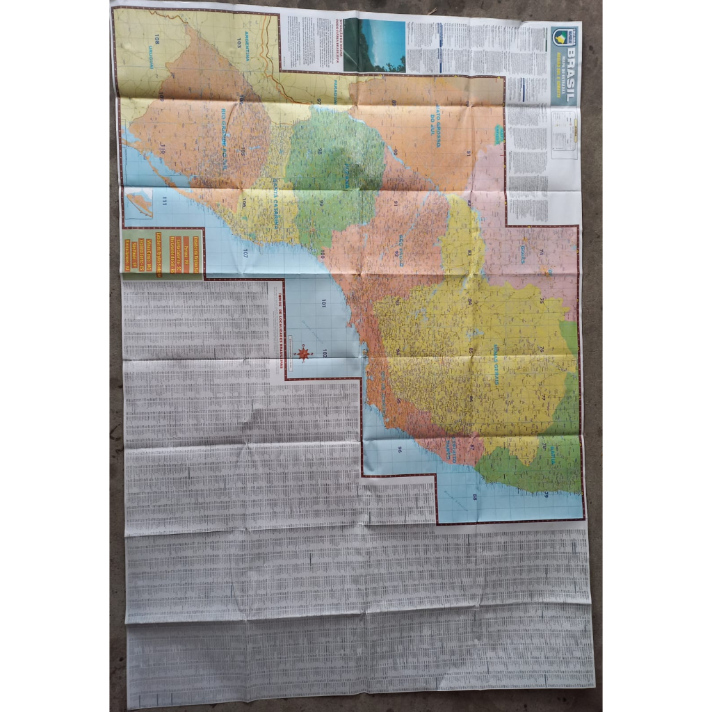 Mapa de Estradas do BRASIL - Mapa Rodoviário de BRASIL : Formato 1,40x1,00 Frente e Verso, dobrado e embalado pasta de PVC, colorido com mais 8.000 localidades de todo BRASIL. Excelente para viagens, segurança e planejamento em suas viagens!!!!
