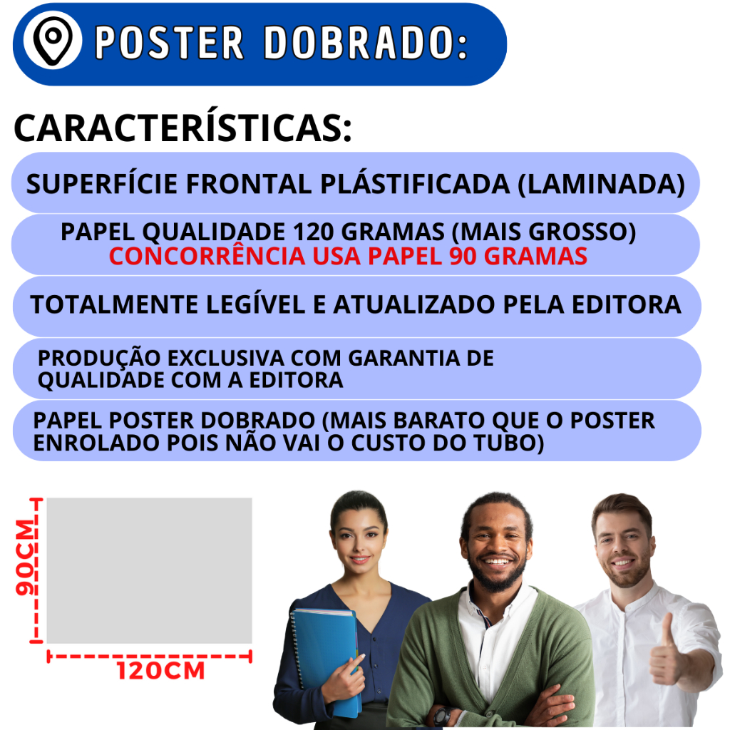 Mapa Mundi Politico Planisfério Escolar Poster Geográfico Papel Dobrado