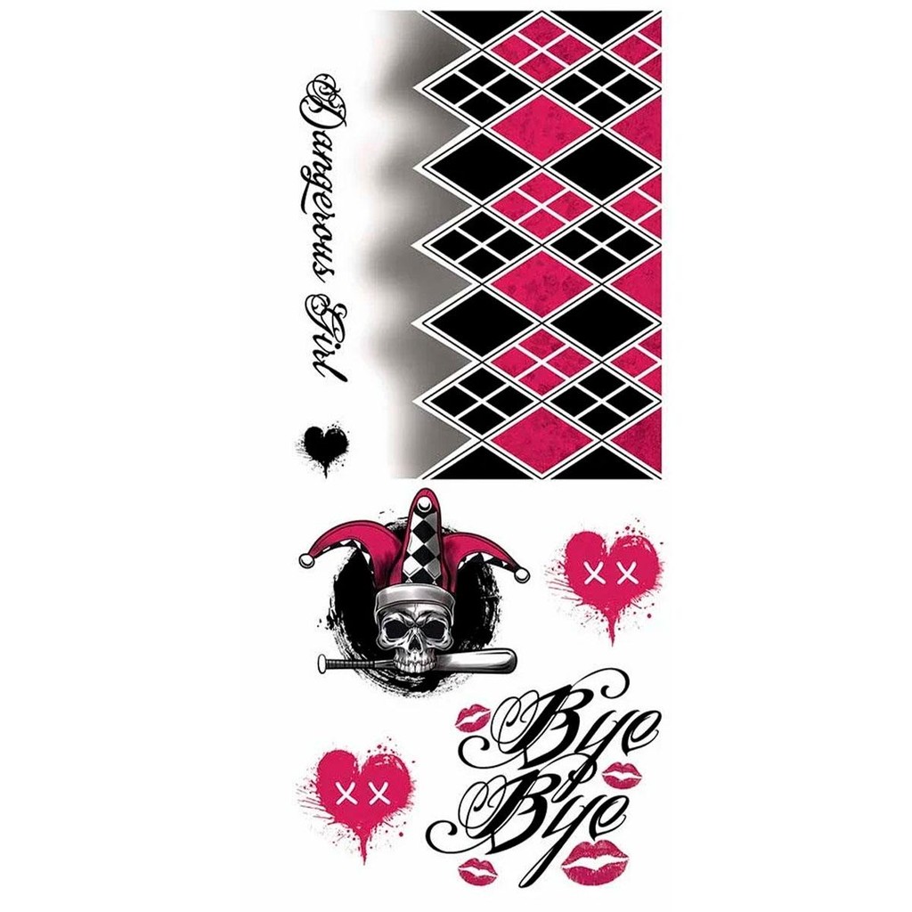 Maquiagem Halloween Adesiva Tatuagem Temporária 3D Fantasia Arlequina e Coringa
