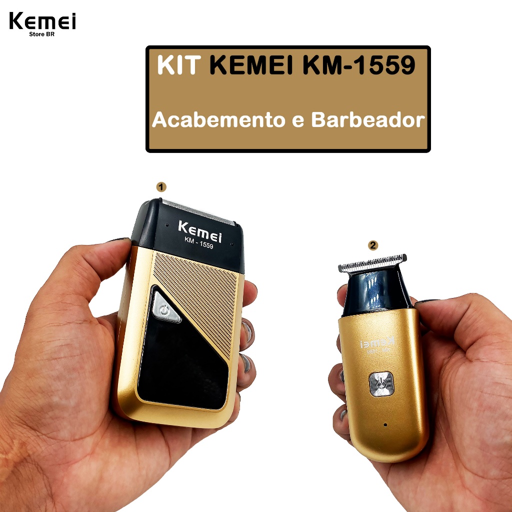 MÁQUINA 2 EM 1 KM - 1559 BARBEADOR + SHAVER BIVOLT 110V/220V PORTÁTIL SEM FIO