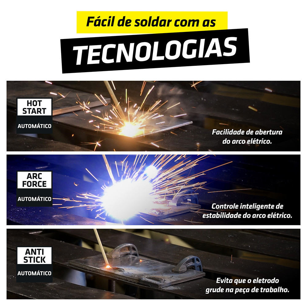 SUPER COMBO MÁQUINA DE SOLDA 180 AMPERES BIVOLT + MÁSCARA DE SOLDA ESCURECIMENTO AUTOMÁTICO 4K + 2 ESQUADROS TORK 12KG + 1 TOCHA TIG A MELHOR TECNOLOGIA DE SOLDA DO MUNDO EM SUAS MÃOS! INVERSOR DE SOLDA 2X1 MMA E TIG LIFT 180A 220V (IE-7180-BIVOLT) KAB 180 MICRO MÁSCARA DE SOLDA ESCURECIMENTO AUTOMÁTICO MAK SOLAR 4K (MSEA-701) MAK SOLAR O INVERSOR DE SOLDA IE-7180-BIVOLT SUPER TORK PROFISSIONAL FOI PROJETADO COM INTUITO DE MODERNIZAR E FACILITAR OS TRABALHOS DE SOLDA. PRODUTO COMBINADO 2X1 A FONTE DE SOLDA TEM A CAPACIDADE DE REALIZAR 2 PROCESSOS DE SOLDAGEM COMO TIG-LIFT E MMA. COM PLACA ELETRÔNICA CONSTRUÍDA EM BASE SMD (MONTAGEM ROBÓTICA) E INSERÇÃO DE COMPONENTES DE ALTA QUALIDADE A FONTE DE SOLDA POSSUI LONGA VIDA ÚTIL E BAIXO NÍVEL DE MANUTENÇÕES. COM TECNOLOGIA IGBT APLICADA EM SEU BLOCO DE POTÊNCIA, A FONTE DE SOLDA PROPORCIONA UMA POTENTE CORRENTE DE SOLDA E BAIXO CONSUMO DE ENERGIA ELÉTRICA. EM SUA CONSTRUÇÃO ELETRÔNICA, DISPOSITIVOS TÉRMICOS DE PROTEÇÃO E COOLER DE ALTA CAPACIDADE DE REFRIGERAÇÃO AUMENTAM SEU CICLO DE TRABALHO, SEGURANÇA E PRODUTIVIDADE EM CONJUNTO. SEU INVERSOR POSSUI 02 (DOIS) ANOS DE GARANTIA CONTRA VÍCIOS DE FABRICAÇÃO, SENDO 9 DE MESES GARANTIA CONTRATUAL + 3 MESES DE GARANTIA LEGAL + 12 MESES DE GARANTIA ADICIONAL. BASTA FAZER O PREENCHIMENTO DO FORMULÁRIO NO SITE, VOCÊ GANHARÁ 12 MESES ADICIONAIS À GARANTIA CONTRATUAL! ESTE É O RESULTADO DA EVOLUÇÃO TÉCNICA E DA QUALIDADE DE NOSSOS EQUIPAMENTOS. OS INVERSORES SUPER TORK FORAM PROJETADOS PARA TORNAR O SEU TRABALHO MAIS RÁPIDO E FÁCIL. AS PRIORIDADES AO PROJETAR ESTA MÁQUINA FORAM PARA FACILITAR A OPERAÇÃO E MANUTENÇÃO, ALÉM DE OFERECER SEGURANÇA, CONFORTO E CONFIABILIDADE. RECURSOS DO INVERSOR IE-7180-BIVOLT • Reconhecimento Automático e tensão (127/220V) • FUNÇÃO MMA ELETRODO REVESTIDO; • FUNÇÃO TIG-LIFT (POSSIBILITA A SOLDA DE CHAPAS FINAS E PROPORCIONA MELHOR ACABAMENTO) • SOLDA TODOS OS TIPOS DE ELETRODOS, TAIS COMO: E6013, E7018, ALUMÍNIO, INOX E FERRO FUNDIDO; • ALTA CAPACIDADE DE SOLDA E ÓTIMO CICLO DE TRABALHO; • HOT-START MMA (FACILIDADE DE ABERTURA DE ARCO ELÉTRICO COM VÁRIOS TIPOS E DIÂMETROS DE ELETRODOS); • ARC-FORCE MMA (CONTROLE DE ESTABILIDADE DE ARCO INTELIGENTE, MANTEM O ARCO BALANCEADO COM CORRENTE + TENSÃO); • ANTI-STICKING MMA (DESABILITA A CORRENTE DE SOLDA QUANDO ELETRODO GRUDA, FÁCIL REMOÇÃO E SEGURANÇA NA SOLDA); • TECNOLOGIA IGBT, POTENTE CORRENTE DE SOLDA E BAIXO CONSUMO DE ENERGIA ELÉTRICA; • INDICADOR DE PROTEÇÃO TÉRMICA (SEGURANÇA E INTELIGÊNCIA); • DISPLAY DIGITAL (FACILIDADE E PRECISÃO DE AJUSTE); • TURBO VENTILADA (ALTA EFICIÊNCIA DE REFRIGERAÇÃO); • ACESSÓRIOS: PORTA ELETRODO, GARRA DO TERRA , ALÇA DE TRANSPORTE, ESCOVA DE LIMPEZA E 02 ESQUADROS MAGNÉTICOS DE 12 KGS; • ACOMPANHA MANUAL DE INSTRUÇÕES E GUIA RÁPIDO CICLO DE TRABALHO MMA - ELETRODO REVESTIDO Eletrodo 2,0mm - 100% EM 220V / 100% EM 127V Eletrodo 2,5mm - 100% EM 220V / 100% EM 127V Eletrodo 3,2mm - 100% EM 220V / 80% EM 127V Eletrodo 4,0mm - 80% EM 220V / NÃO EM 127V CICLO DE TRABALHO TIG-LIFT Tungstênio - 1.0 - 100% EM 220V / 100% EM 127V Tungstênio - 1.6 - 100% EM 220V / 100% EM 127V Tungstênio - 2.0 - 100% EM 220V / 80% EM 127V Tungstênio - 2.4 - 60% EM 220V / 40% EM 127V Tungstênio - 3.2 - NÃO EM 220V / NÃO EM 127V DADOS TÉCNICOS – IE-7180-BIVOLT Ligação: TOMADA (20A) OU DISJUNTOR Frequência: 60hz Voltagem: 127v/220v - Automático Corrente de entrada eficiente 127v - 32A Corrente de entrada eficiente 220v - 26A Potência: 7.800w Tensão no Vazio 127v: 76v Tensão no Vazio 220v: 70v Amperagem mínima 127v/220v: 20 A Amperagem máxima 127v/220v: 180A Diâmetro do eletrodo: 2,0 ~ 4,0mm Conector: 9mm Dimensões: 220 x 85 x 132mm Peso: 2,000 kg Hot Start: Automático Arc Force: Automático Anti Stick: Automático MÁSCARA DE SOLDA ESCURECIMENTO AUTOMÁTICO MAK-SOLAR 4K – CORES REAIS! A MÁSCARA DE SOLDA MSEA-701 4K SUPER TORK É O CONJUNTO DE SEGURANÇA E TECNOLOGIA! AGORA EM UMA NOVA VERSÃO COM VISOR DE ALTA DEFINIÇÃO 4K, CORES REAIS QUE PERMITEM AO SOLDADOR REALIZAR SOLDAS MAIS PRECISAS, FÁCIL VISÃO NO PROCESSO DE SOLDAGEM. NÃO É NECESSÁRIO REMOVER O CAPACETE PARA ENXERGAR OS RESULTADOS, A TECNOLOGIA 4K OFERECE NITIDEZ E CLAREZA AO SOLDADOR. GANHO NA PRODUTIVIDADE E ACABAMENTO! MÁSCARA IDEAL PARA SOLDAS MMA ELETRODO REVESTIDO, TIG, MIG-MAG E CORTE PLASMA. RECURSOS DA MÁSCARA DE SOLDA MSEA-701: • IDEAL PARA SOLDAS MMA ELETRODO REVESTIDO, TIG, MIG-MAG E CORTE PLASMA; • TEMPO DE RESPOSTA DE 0,0004 SEGUNDO; • CÉLULA DE ACIONAMENTO DO DISPLAY ECONOMIA DA BATERIA; • FUNÇÃO ESMERILHADEIRA; • DISPLAY DE
