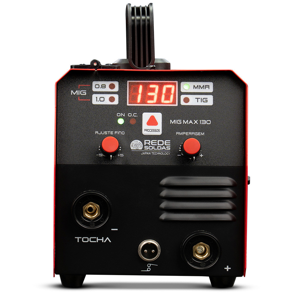Maquina Aparelho Inversor de Solda 3 em 1 Mig MAX 130 Amperes Sinergico Tig Eletrodo RedeSoldas