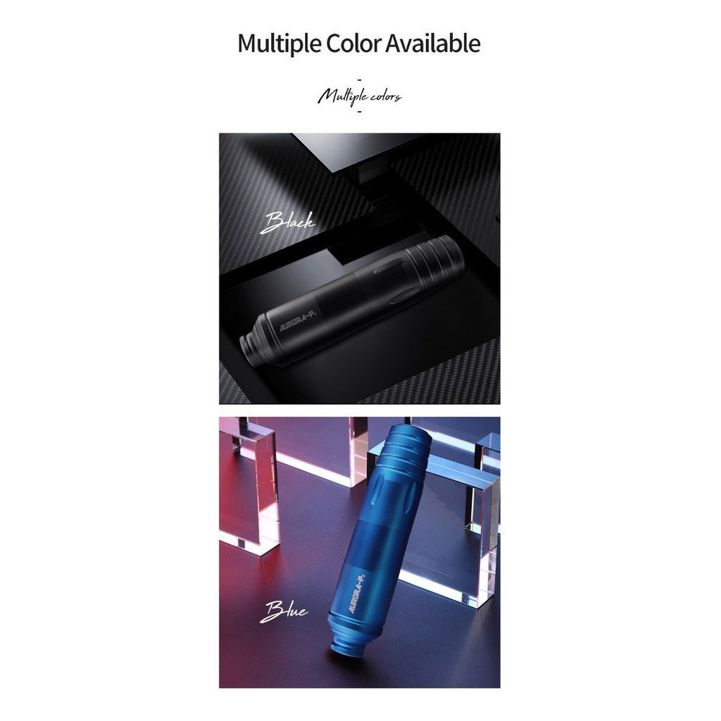 Pronta Entrega! Descrição: - Máquina Pen Aurora P2 - COMPATÍVEL COM CARTUCHOS UNIVERSAIS :D - Máquina hibrida, pode ser usada tanto pra traço quanto pra pintura. - Tensão de funcionamento: 3,5v-10v - Conector RCA - Dimensões: comprimento aproximado de 11,5cm - Material do corpo da máquina: Alumínio de aviação - Peso: 144g - Comprimento do curso: 3.5mm - Possui regulagem de recuo da agulha. - Velocidade: 10000 rpm O que acompanha: - Máquina de tatuagem Pen Aurora P2 - Pecinhas/borrachinhas de reposição - Chavinhas - 3 grips de silicone