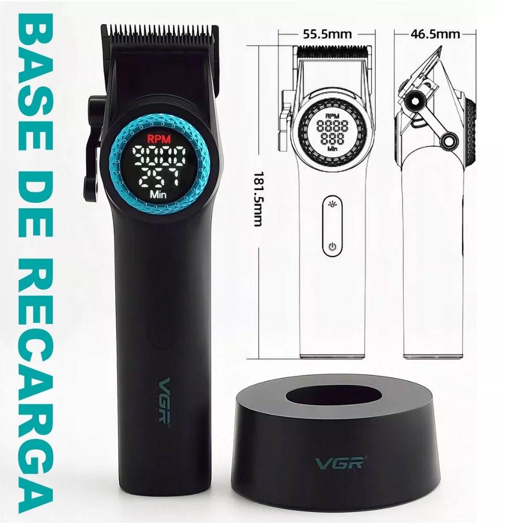 ESPECIFICAÇÕES TÉCNICAS - Marca: VGR - Modelo: v001 - Motor: Com 21 velocidades, chegando até 9.000 RPM - Peso: 500 gramas - Bateria: Lítio, 4600mAh, com 4 horas de autonomia - Carregamento: Tipo C - Alavanca: Catracada com 5 ajustes - Lâmina: Fade revestida em Aço Carbono DLC CONTEÚDO DA EMBALAGEM: - 01 Máquina de Cortar Cabelo - 10 Pentes Guia de Corte (0.5, 1.0, 1.5, 2, 3, 4, 5, 6, 7, 8) - 01 Base de Carregamento - 01 Cabo de Carregamento USB - 01 Escova de Limpeza - 01 Manual de Instruções - 01 Óleo Lubrificante