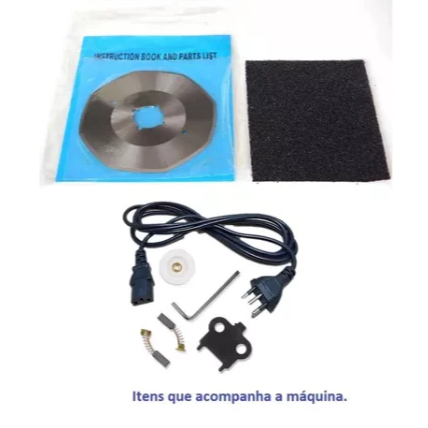Máquina de Cortar Tecido com Disco Oitavado Especificações: Mecanismo de lâmina baixa e disco circular de formato octogonal impede o travamento da faca Base extrafina exclusiva permite um corte preciso e sem escorregamento Afiador automático com pedra de amolar de fácil substituição e acionamento simples Motor elétrico de alto desempenho Protetor de lâmina deslizante frontal Ideal para pequenas quantidades de materiais Capacidade de corte: 2,5 cm Potencia: 250W RPM: 1.100