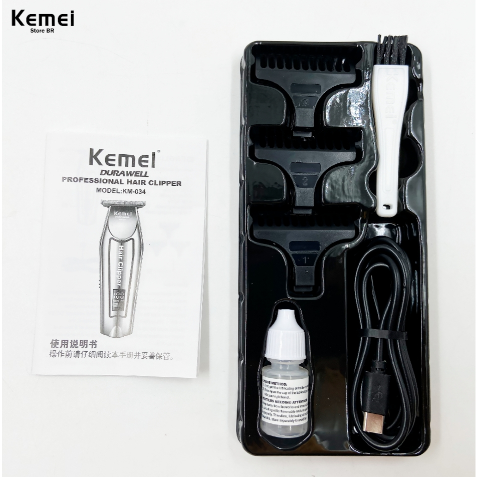 A Kemei KM-034 é a escolha ideal para quem busca desempenho, portabilidade e versatilidade no cuidado pessoal. Com potência de 5W e bateria de lítio de 1500mAh, ela garante até 100 minutos de uso contínuo com apenas 2,5 horas de carregamento, perfeita para uso doméstico, profissional ou em viagens. Características principais 💡 Display LCD: Exibe o nível de bateria e ajustes de velocidade em tempo real. ⚙️ Múltiplas configurações de velocidade: Adapte o corte à sua necessidade. ✂️ Lâmina de aço inoxidável: Alta durabilidade e precisão no corte. 🔋 Carregamento rápido via USB (entrada 5V) 🔧 Comprimento de corte ajustável: Ideal para diferentes estilos e acabamentos. 🌍 Bivolt automático (100–120V): Use com segurança em qualquer lugar. 🏠 Aplicação ampla: Para casa, uso profissional, hotéis ou ao ar livre. Especificações técnicas: Modelo: KM-034 Material da carcaça: Plástico resistente Tipo de alimentação: Bateria recarregável (não removível) Tempo de carga: 2,5 horas Tempo de uso: até 100 minutos Tamanho portátil e sem fio: Mais liberdade e conforto durante o uso Idioma operacional: Inglês Lavável: Não