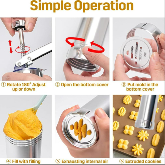 ✔ 20 formatos de biscoito diferentes Crie facilmente biscoitos lindos com vários formatos. ✔ 4 bicos de decoração Ideal para decorar biscoitos, bolos e sobremesas. ✔ Liga de alumínio resistente Material durável, seguro para alimentos e fácil de limpar. ✔ Fácil de usar Sistema de pressão simples que permite fazer biscoitos perfeitos em segundos. ✔ Perfeito para toda a família Ideal para cozinhar com crianças e aproveitar momentos especiais. ⸻ 🧁 Descrição do Produto Faça biscoitos deliciosos e com formato perfeito de maneira rápida e prática! A Prensa de Biscoitos em Liga de Alumínio é resistente, durável e muito fácil de usar. Com 20 moldes diferentes e 4 bicos de decoração, você pode criar biscoitos lindos para festas, Natal, aniversários ou para aproveitar um momento especial em família. O design ergonômico facilita o uso e garante uma pressão uniforme, permitindo produzir biscoitos com formato perfeito em poucos segundos. Ideal para quem ama cozinhar, preparar doces caseiros ou fazer biscoitos profissionais em casa. ⸻ 📦 Conteúdo da Embalagem 1 × Prensa de Biscoitos 20 × Discos de Formato 4 × Bicos de Decoração