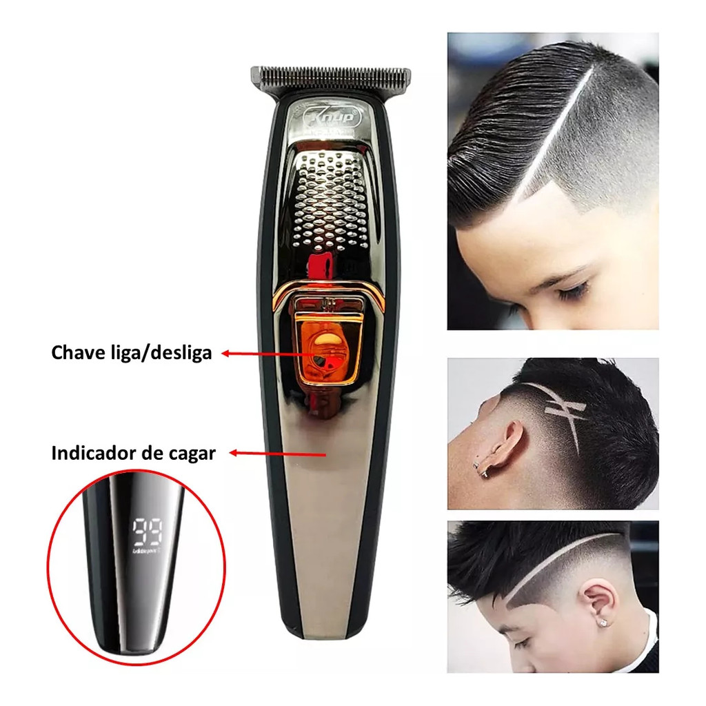 Maquina de Cortar Cabelo Aço Inoxídavel Sem Fio KP-MA201