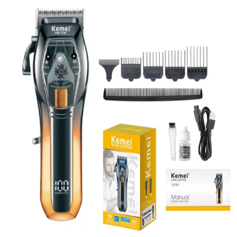 Máquina de Cortar Cabelo KEMEI -1768 Profissional 9.000 RPM USB Sem Fio Portátil Com Acessorios Nova