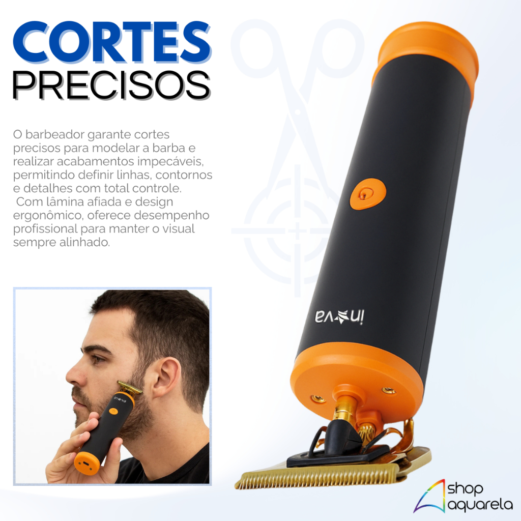 Barbeador Elétrico Recarregável Inova KV-432 – Precisão, Praticidade e Estilo no Seu Dia a Dia Mantenha a barba sempre bem feita com o Barbeador Elétrico Recarregável Inova KV-432. Com design moderno, lâmina de aço inox e corpo resistente à água (resistente, não à prova d’água), ele garante cortes precisos para modelar, aparar e finalizar com qualidade profissional. Leve e portátil, é perfeito para usar em casa ou levar na bolsa, oferecendo praticidade e resultados impecáveis a qualquer hora. O que acompanha o produto: 1 Barbeador Inova KV-432 4 pentes de corte 1 protetor de lâmina 1 cabo USB para carregamento 1 óleo lubrificante 1 escova de limpeza Destaques: • Lâmina de aço inox durável e resistente à corrosão • Corte preciso para barba, acabamento e pézinho • Resistente à água: fácil limpeza sob água corrente • Design leve e portátil para uso em qualquer lugar • Bateria recarregável com excelente autonomia • Carregamento rápido via cabo USB • Inclui pentes para diferentes comprimentos de corte Especificações Técnicas: • Modelo: KV-432 • Material da lâmina: Aço inox • Alimentação: Bateria recarregável • Entrada: 5V – 1A • Potência: 5W • Tempo de carregamento: aproximadamente 3 horas • Cor: Preto com detalhes laranja • Compatibilidade: uso doméstico e profissional Dúvidas Frequentes: • Pode usar no banho? Não. O barbeador é resistente à água para facilitar a limpeza, mas não deve ser submerso. • É fácil de limpar? Sim. Basta remover a lâmina e enxaguar com água corrente para eliminar resíduos. • Funciona sem fio? Sim, após carregado, pode ser usado sem fio com total liberdade de movimentos. Produto novo, original, com nota fiscal e envio imediato.