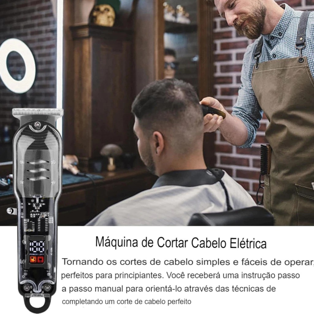 Máquina De Cortar Cabelo Profissional Smart Lcd Display Barbeador Eletrico Transparente Sem Fio Para Homens