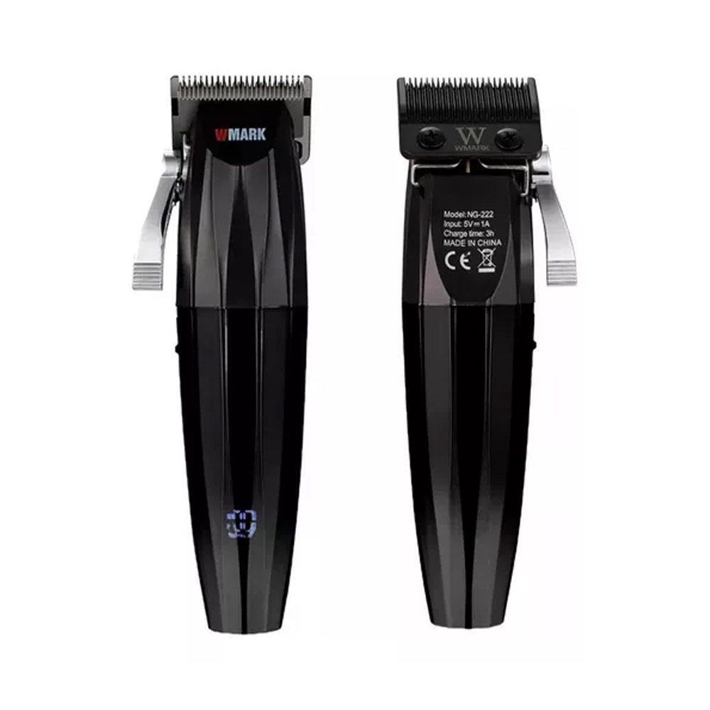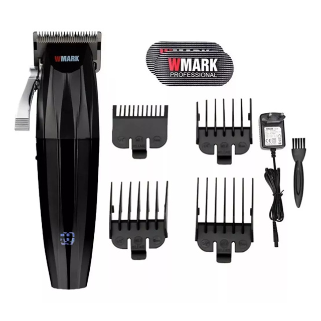 Bateria de Lítio ( tempo de execução 180 minutos, tempo de carregamento 3 horas ); Lâmina aço inoxidável de alto grau 440C (9CR18) Bateria de lítio: 2500mAh Tempo de carga: 3 horas Tempo de uso: 180 minutos Voltagem: 110v-220v(Bivolt) Alavanca Catracada Ajuste da lamina: (0.5mm/1.5mm/2.5mm/3.5mm) Itens Inclusos: 1x Maquina Wmark Ng-222 1x Óleo lubrificante 1x Escova de limpeza 1x Carregador 4x Pentes guias ( 3/6/9/12mm) 1x Divisor de Cabelo