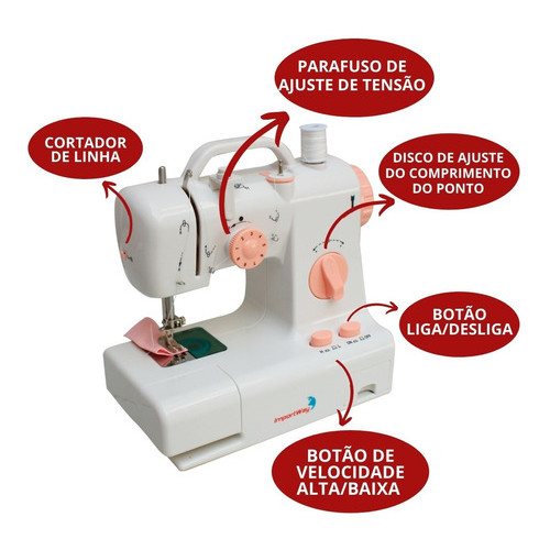 Máquina de Costura Reta até 2 Velocidades Portátil e Elétrica Bivolt Importway IWMC-501