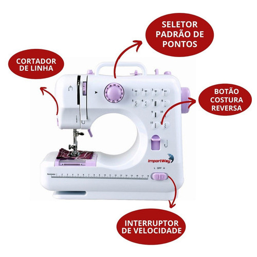 Máquina De Costura Reta ImportWay 12 Pontos Doméstica IWMC-505 Portátil Branco 127/220V