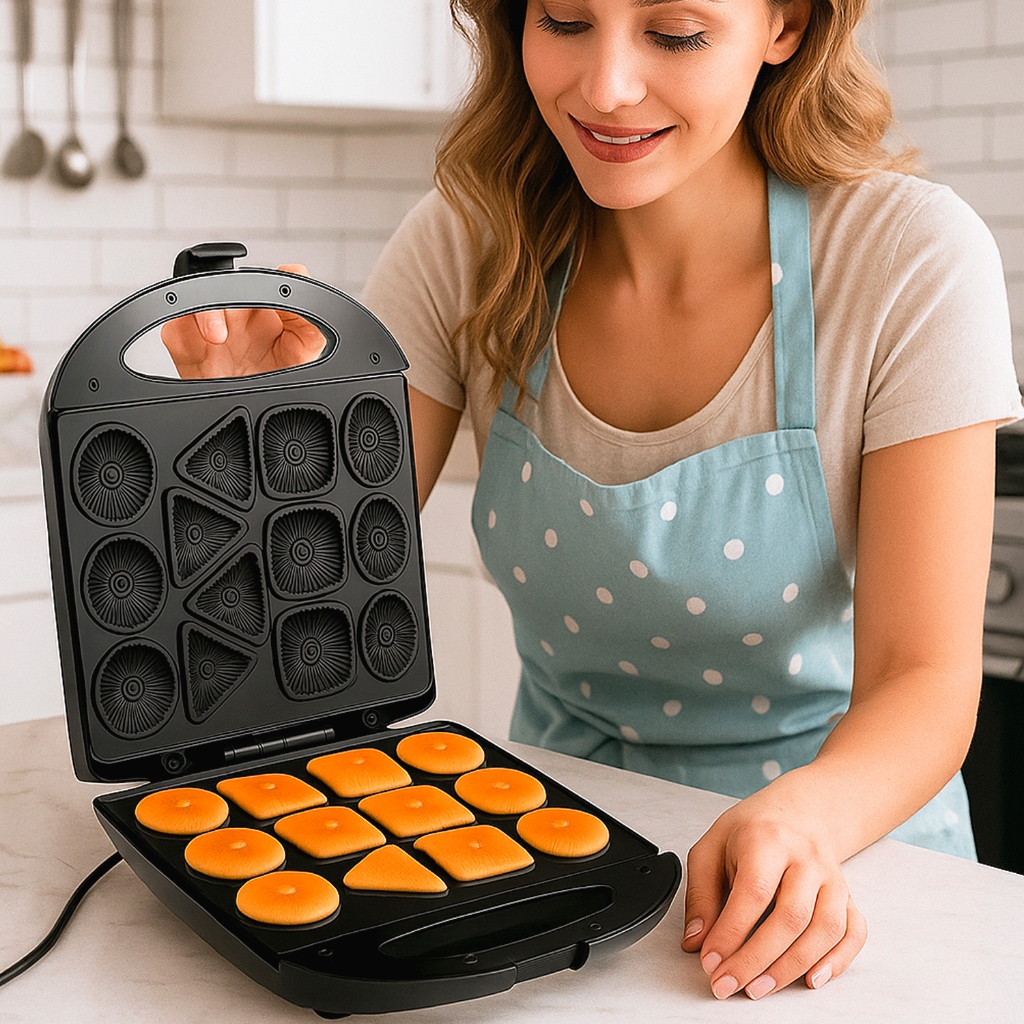 Máquina de Fazer Biscoito Cookie 110V/220v Bolacha Divertida Waffle 1400W Anti Aderente