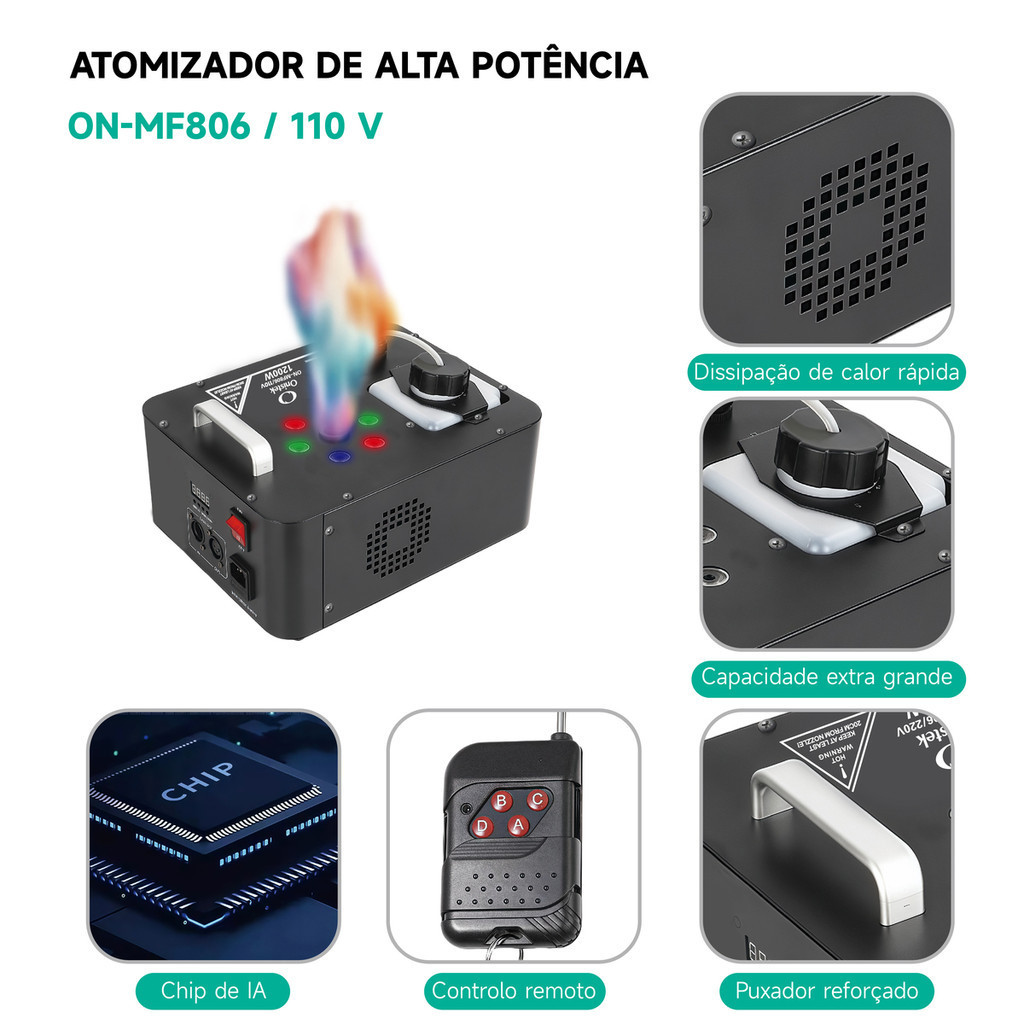 Máquina de Fumaça 1200W com LED Colorido Controle Remoto Efeito Especial para Festas e Eventos
