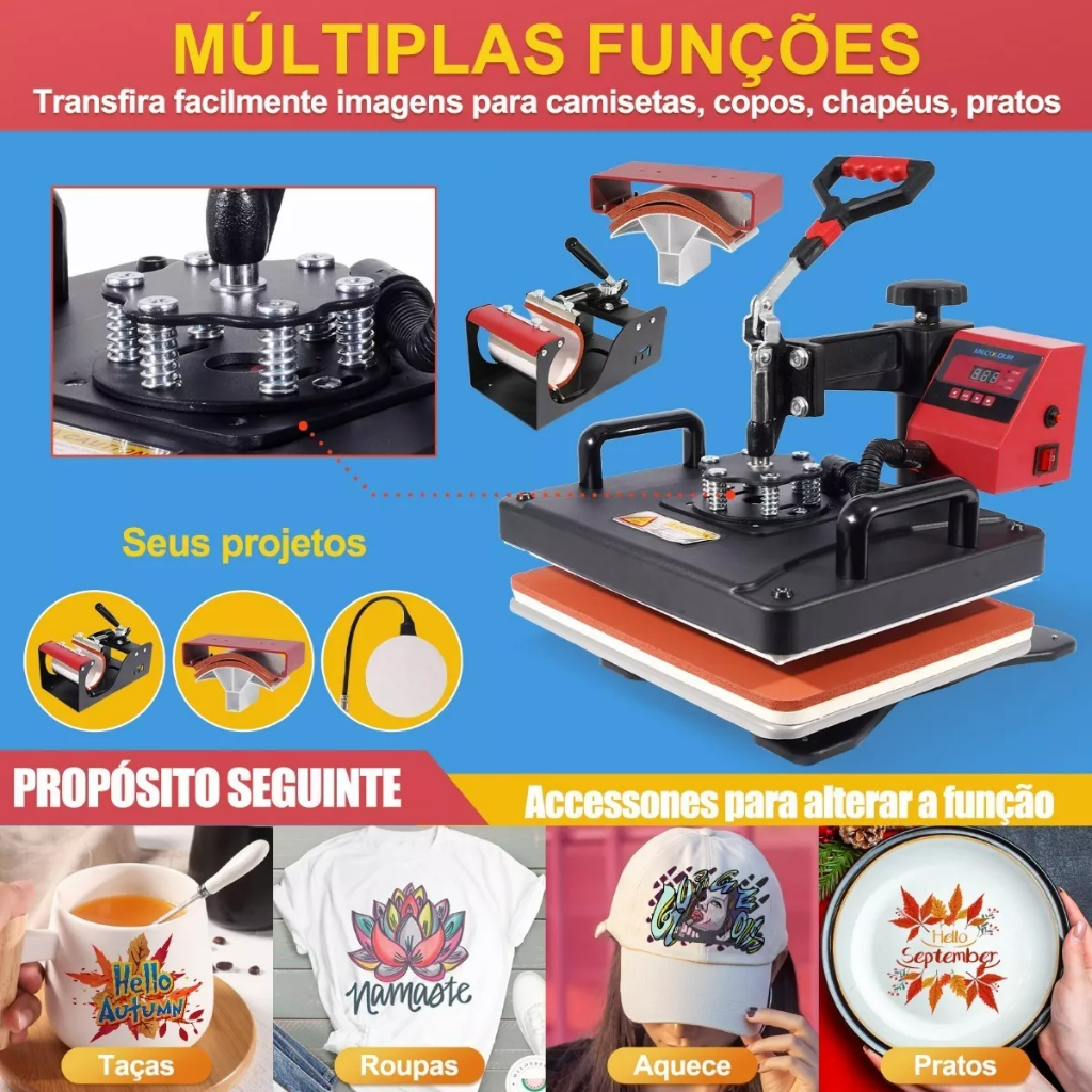 Máquina de Impressão por Sublimação 8 em 1 Máquina Multifuncional de Prensa Térmica Plana Pode Personalizada Mecolour