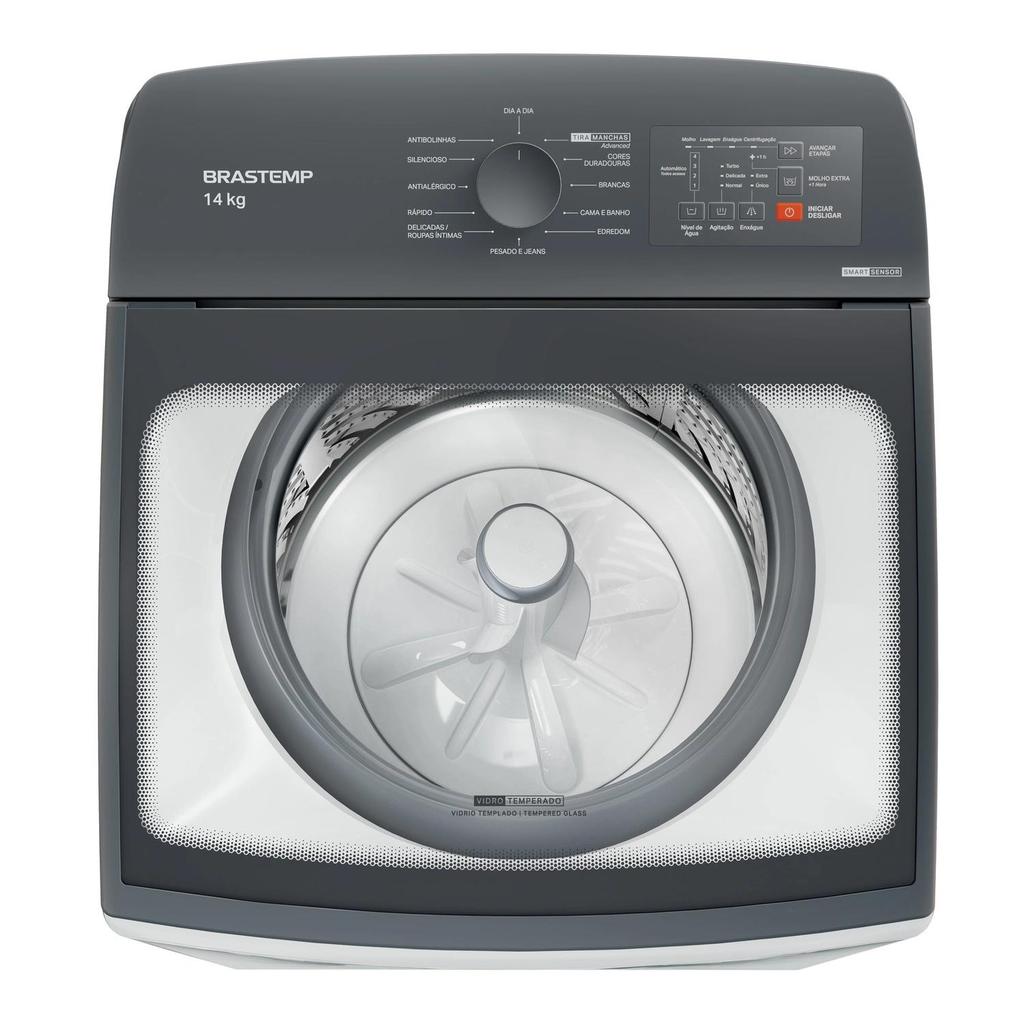 A Máquina de Lavar Brastemp 14kg combina design moderno e exclusivo com a alta performance do Ciclo Tira-Manchas Advanced, que possui sistema especial de molho e agitação capaz de remover mais de 40 tipos de manchas difíceis[1], de canetinha até desodorante, sem danificar os tecidos. Com o Ciclo Edredom, até o seu edredom de casal pode ser lavado sem preocupação e sem esforço[3]. Libere sua rotina com o Smart Sensor: sensores inteligentes identificam o peso das roupas e ajustam automaticamente o nível de água e o perfil de agitação, garantindo a performance ideal e a economia de até 25% de água[4]. É outra lavadora, é outro mundo.