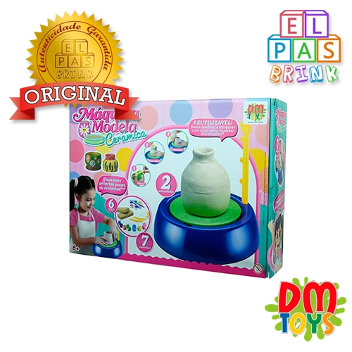Brinque usando a sua criatividade! Faça suas próprias peças de cerâmica! Com 06 acessórios. ***ATENÇÃO: IMAGENS ILUSTRATIVAS, AS CORES SÃO SORTIDAS E NÃO É POSSIVEL ESCOLHER*** IDADE RECOMENDADA: Acima de 06 (seis) anos CONTEÚDO DA EMBALAGEM: – 01 Máquina para modelar cerâmica – 02 Pacotes com 400g de massa cerâmica cada (peso total da massa: 800g) – 01 Ferramenta para cortar a cerâmica – 02 Ferramentas de esculpir – 01 Suporte para decorar e esculpir – 02 Pincéis – 06 Potes com tinta acrílica OUTRAS INFORMAÇÕES: – Utiliza 2 Pilhas D – Máquina: Plástico ABS – Tintas: Resina acrílica, água, aditivos, pigmentos e carga – Cerâmica: óxido de aluminio, dióxido de silíco, óxido de ferro, óxido de magnésio, óxido de potássio, óxido de cálcio, óxido de sódio, óxido de titânio, redutor de queimadura. REGISTRO DO INMETRO: 000 424/2025