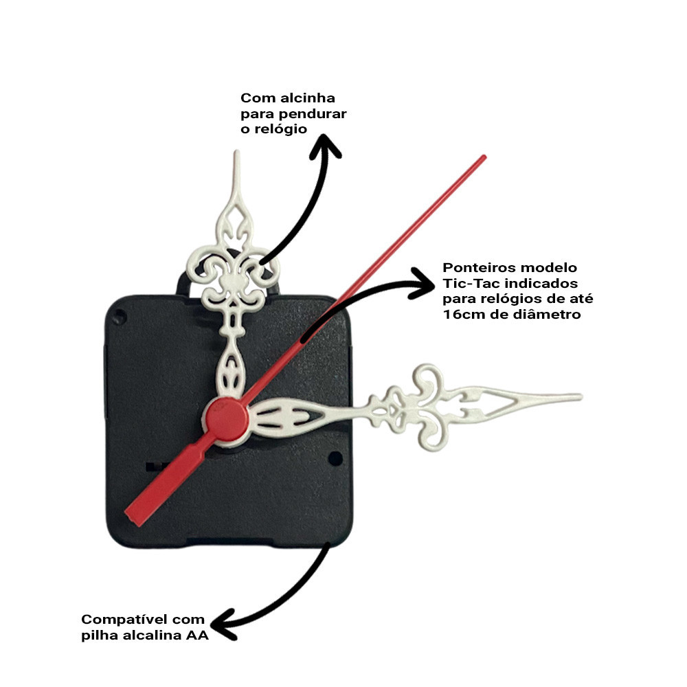 Máquina de Relógio Tic Tac Quartz de Parede 13mm com Ponteiros Luiz Xv 7,5cm Branco Vermelho vale a pena?