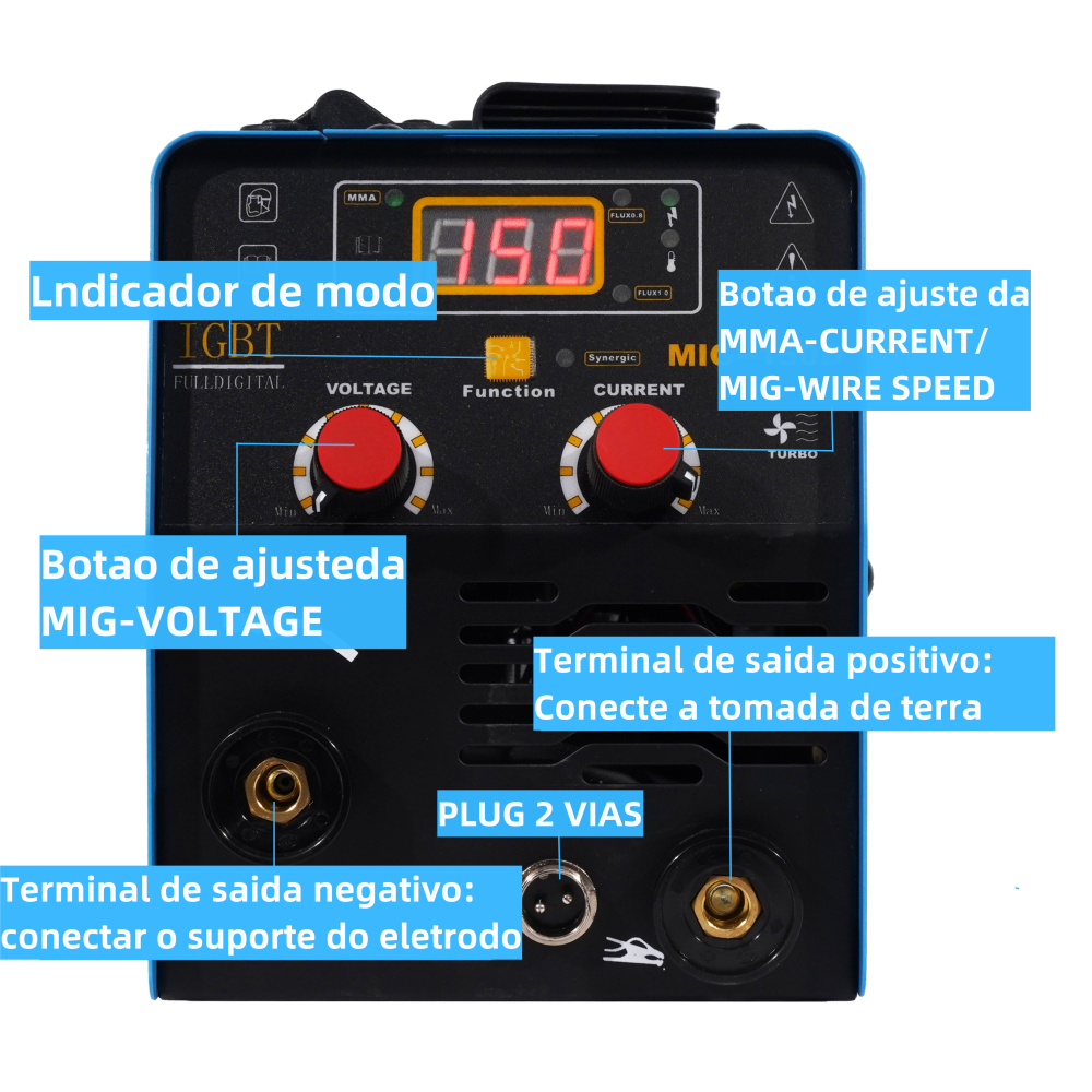 Máquina de Solda Inversor MIG-150 Sem Gás 3 em 1 MIG, MMA e TIG