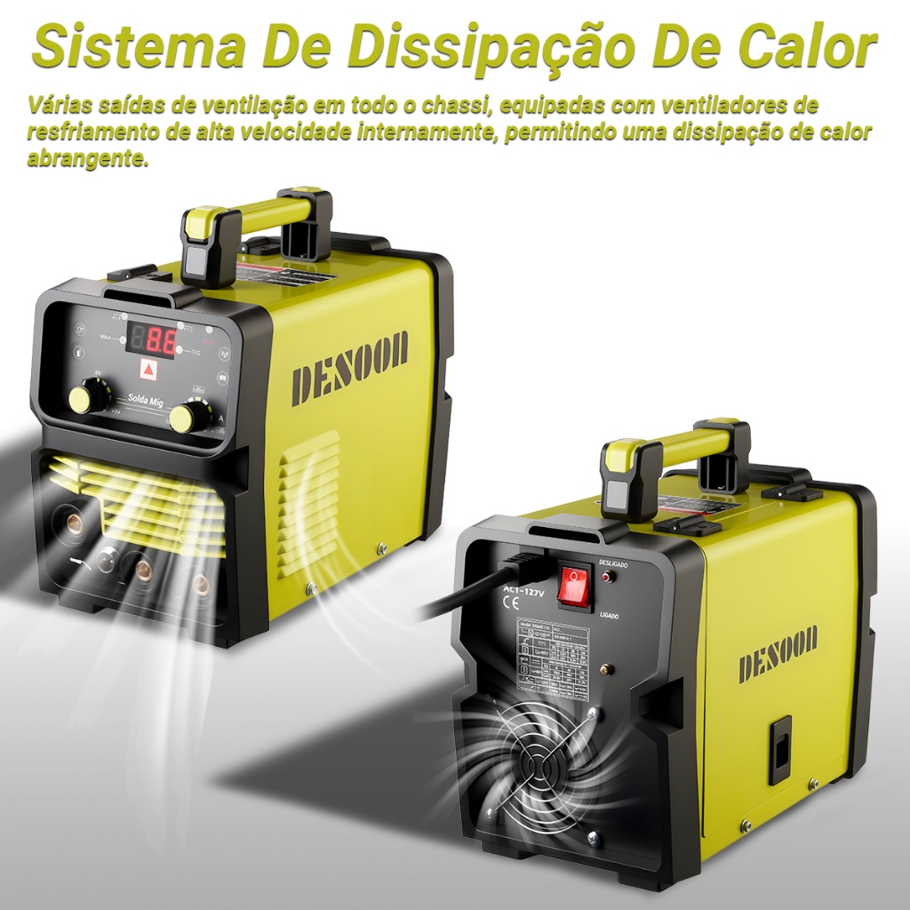 Máquina De Solda Inversora 120a 3 Em 1 Mig Sem Gás Mma Tig Lift Com Mascara De Proteção E Pistola Mig Separada Desoon
