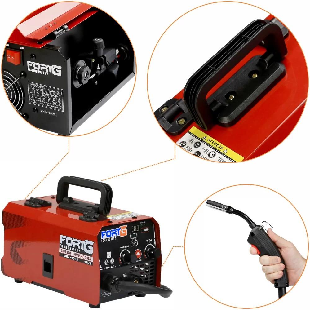 Máquina de Solda Inversora 220V Compacta MIG Sem Gás 100A 60Hz Proteção F Escudo Solda - FortG