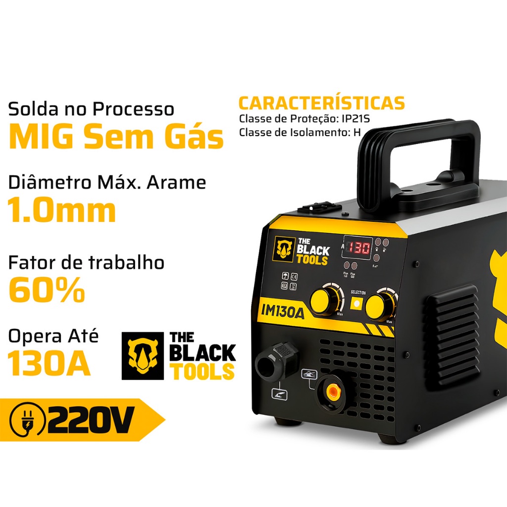 Máquina De Solda Inversora Sem Gás Black Mig IM130A The Black Tools Com Óculos De Solda + Acessórios