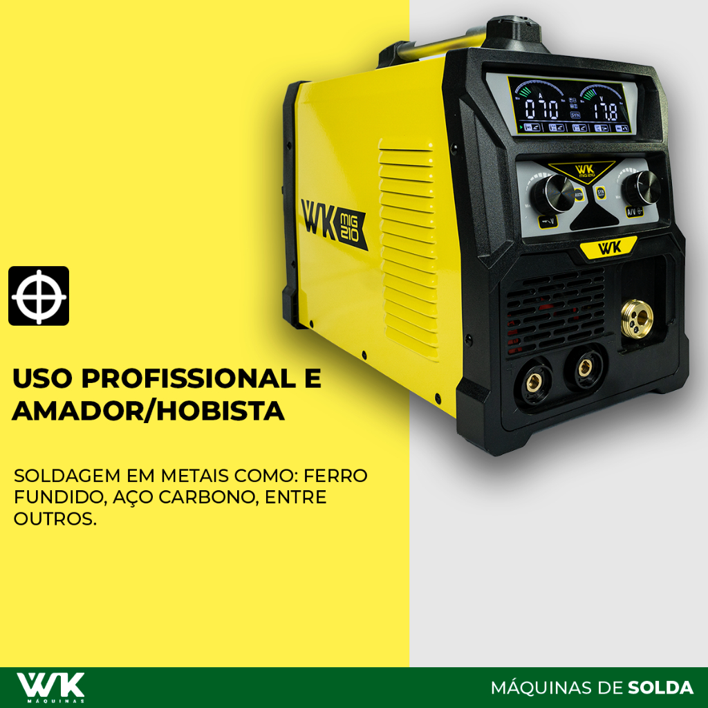 Máquina de Solda Multiprocesso WK MIG 210A 220V MIG com/sem gás MMA TIG LIFT