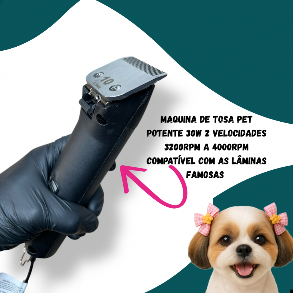 Máquina de Tosa Pet Bahwolf Profissional – Potência e Versatilidade para Banho e Tosa Se você busca uma máquina de tosa profissional, a Bahwolf é a escolha certa para cuidar do seu pet com eficiência e conforto. Compatível com lâminas das marcas mais renomadas do mercado, como Oster, Wahl, Andis, Propretz e Precision Edge, esta máquina oferece alta performance e durabilidade. Principais Características: Potência de 30W para um corte rápido e preciso Duas velocidades ajustáveis: de 3200rpm a 4000rpm, garantindo versatilidade para diferentes tipos de pelagem Cabo resistente de 3,5 metros, ideal para uso profissional e conforto durante o manuseio Compatível com lâminas Andis, Oster, Wahl, Propretz e Precision Edge Inclusos na embalagem: 1 lâmina tamanho 10# pronta para uso 4 pentes adaptadores para diferentes comprimentos de corte 1 maquina 1 garrafinha para colocar óleo (não acompanha Óleo) Benefícios Profissionais: Esta máquina foi desenvolvida para oferecer a melhor experiência para tosado
