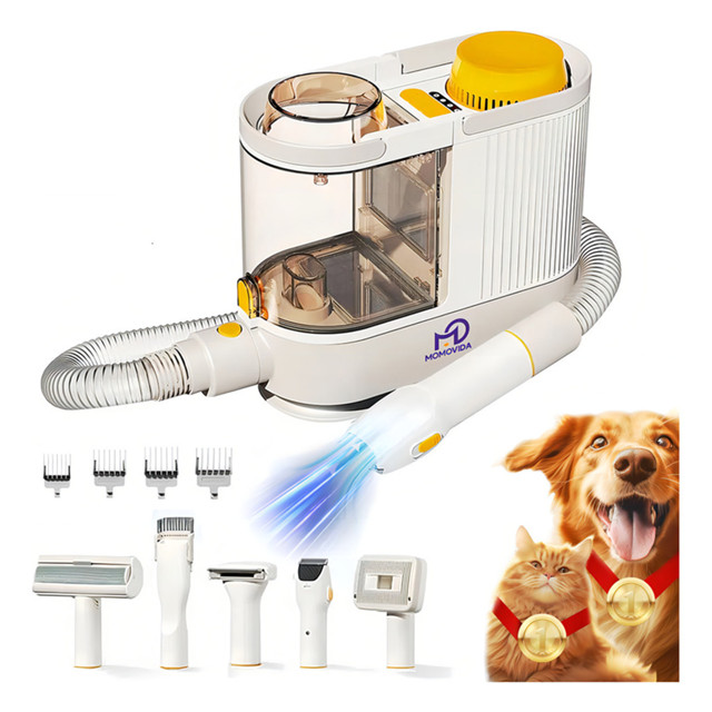 Máquina De Tosa Para Pets Cães E Gatos /Escova Pet Aspirador De Pelos Pet 5 Em1 Profissional kit , 1.9L Maquina de Tosa Profissional Cachorros Aparador de Pelos para Cachorro kit Momovida PG-1 Kit de tosa a vácuo para animais de estimação: 350 W de potência, sucção forte de 12.000 kPa. Aspirador de pó para tosa de cães. Com um poder de sucção de até 12.000 kPa, este kit de tosa para cães com função de aspiração pode coletar pelos de animais no recipiente do aspirador enquanto apara e penteia os pelos, mantendo sua casa limpa, sem mais pelos emaranhados e acumulados pela casa. Experimente uma experiência de higiene profissional em casa: Nosso kit de higiene para animais de estimação e aspirador de pó 5 em 1 tem tudo o que você precisa para cuidar de cães e gatos: pente protetor confortável e pente de corte ajustável (6/12/18/24 mm) para aparar pelos de diferentes comprimentos. O pente guia removível pode ser substituído de forma rápida e fácil para maior versatilidade. Seja seu animal de estimação de pelo longo ou curto, você pode deixá-lo desfrutar de uma experiência de higiene profissional no conforto da sua casa! Evite a ida cara ao pet shop e economize tempo e dinheiro! Design silencioso: Nosso aspirador de pó para animais de estimação tem apenas 60 decibéis. A máquina de cortar cabelo elétrica para cães adota um design silencioso e três potências de sucção ajustáveis para ajudar os animais a se sentirem à vontade e sem medo de cortar os pelos. Recomendamos pentear os pelos do seu animal com nossa escova antes de aparar os pelos, dando a ele alguns petiscos para evitar que ele fique nervoso devido ao barulho da aspiração, o que torna a experiência de higiene mais agradável. Grande Capacidade Coletor de Pó: Nosso aspirador de pó para tosa de cães é equipado com um coletor de pó grande que acomoda facilmente até cães de grande porte, sem a necessidade de parar com frequência para esvaziá-lo ao pentear e aparar os pelos. Além disso, o coletor de pó é muito fácil de esvaziar – basta puxar o fecho de liberação rápida do coletor para esvaziá-lo sem contato. O cabo de alimentação tem cerca de 2,5 metros de comprimento, o suficiente para proporcionar maior flexibilidade. Você pode pentear os pelos do seu animal de estimação no quintal ou em uma sala espaçosa sem restrições de distância. Além disso, todos os acessórios são armazenados de forma organizada na bolsa de armazenamento, dizendo adeus à desordem. Conteúdo da Embalagem: - 1x Aspirador de Pó - 1x Mangueira Desmontável - 1x Máquina de Cortar Pelos Elétrica - 1x Ferramenta de Depilação - 1x Escova de Pelos 2 em 1 - 1x Escova de Limpeza - 1x Depilador - Pente de Proteção Comfort (6/12/18/24 mm) - Kit de Filtro de Reposição - Manual de Instruções - Cabo de alimentação de 2,5 m Momovida prioriza a saúde e segurança dos pets. Nossos produtos são testados por organizações internacionais como SGS, PONY e QIT, garantindo conformidade com todas as certificações de segurança. Garantia do vendedor: 90 dias
