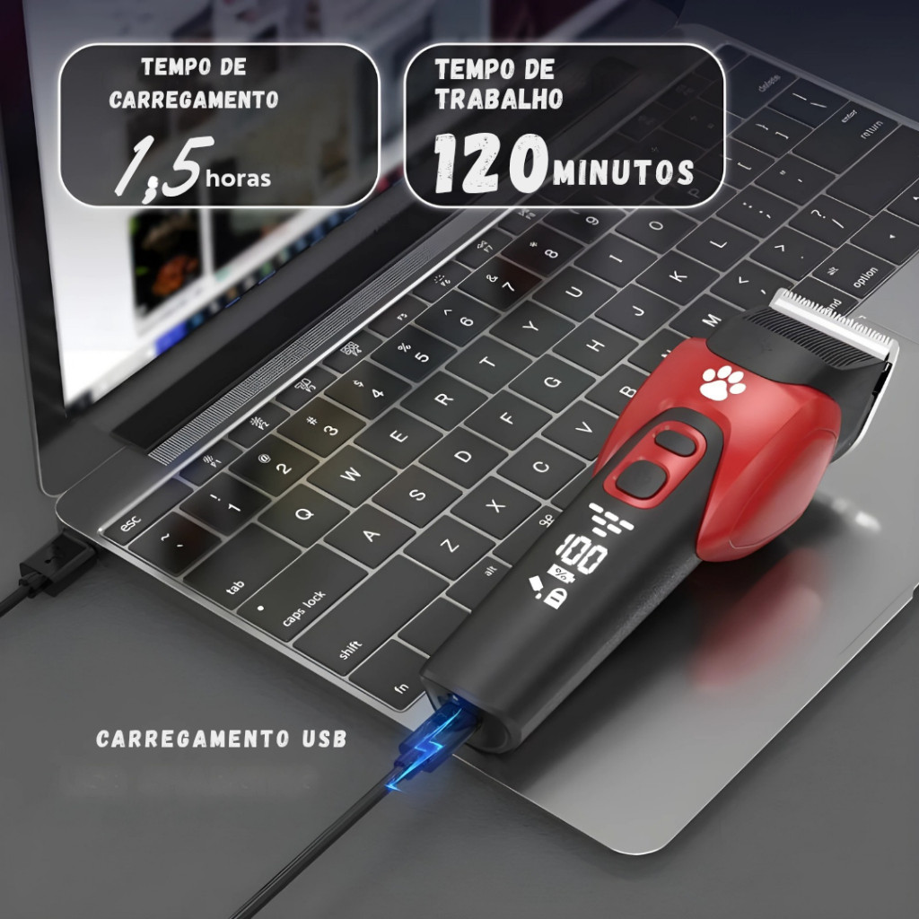 Máquina de Tosar Pelos Pets Profissional Recarregável Sem Fio Bivolt Elétrica Silenciosa Tosa