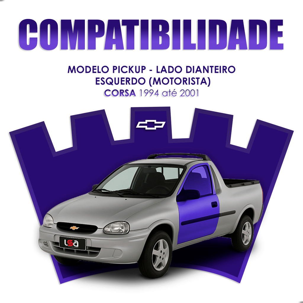 Máquina de Vidro Manual Lado Dianteiro Esquerdo (Motorista) Chevrolet Corsa 1994 1995 1996 1997 1998 1999 2000 2001 - Modelo 2 Portas / Chevrolet Corsa Pick-up 1994 1995 1996 1997 1998 1999 2000 2001. Leia com ATENÇÃO todas as informações do anúncio e compre somente na certeza. Verifique o modelo, ano, ou qualquer dúvida nos contate no campo de perguntas antes de finalizar a compra. Produto 1ª Linha (NÃO É ORIGINAL). Especificações Técnicas: • Número de Portas do Veículo: 2 portas. • Acionamento Manual. • Estrutura Reforçada. • Funcionamento Suave e Silencioso. • Aplicação Dianteira. • Encaixe perfeito semelhante ao da peça original. • Ideal para reposição de Peças. Compatibilidade: • Chevrolet Corsa 2p 1994 - 2001 • Chevrolet Corsa Pick-up 1994 - 2001 Conteúdo da Embalagem: • 01 Máquina de Vidro Manual Lado Dianteiro Esquerdo (Motorista). Medidas • Altura da embalagem: 11 cm • Largura da embalagem: 30 cm • Profundidade da embalagem: 69 cm • Peso bruto: 1,380 kg Garantia: • 12 Meses de Fábrica. GARANTIA: • Garantia de 3 meses após a compra. Importante: • Recomendamos que a instalação seja feita por um profissional especializado e não temos responsabilidade pelo mau uso do produto. Por que comprar com a LSA – Loja do Som e Acessórios? • Especialistas em som automotivo: anos de experiência no segmento e conhecimento técnico para oferecer os melhores produtos; • Produtos originais e testados: trabalhamos apenas com marcas reconhecidas e garantia de procedência; • Envio rápido e seguro: logística 100% integrada com os marketplaces, garantindo rastreamento e entrega confiável em todo o Brasil; • Atendimento especializado: suporte rápido via chat das plataformas, ajudando a escolher o produto certo para sua necessidade; • Pós-venda ativo: acompanhamento após a compra para garantir sua satisfação; • Variedade e atualização constante: catálogo completo de alto-falantes, módulos, players e acessórios automotivos.