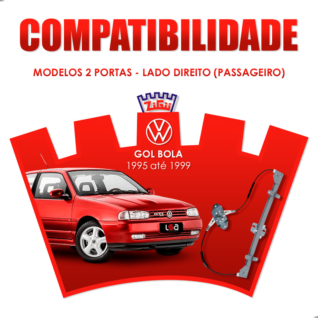 Máquina de Vidro Manual Direita Volkswagen Gol e Parati Bola 2 Portas 1995 a 1999 Reposição Dianteira