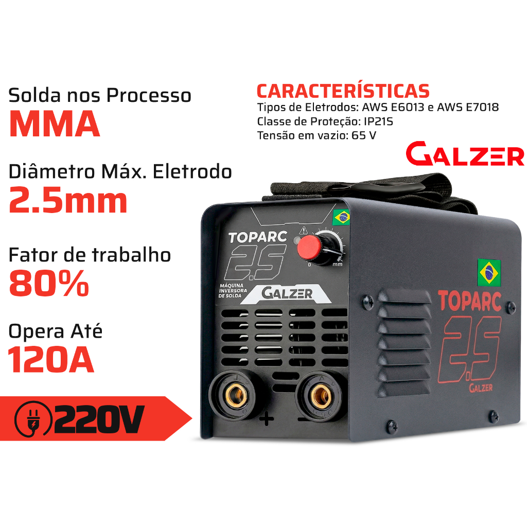 Máquina Inversora De Solda 120a 220v Mma Eletrodo 2,5mm Ciclo Portátil Galzer