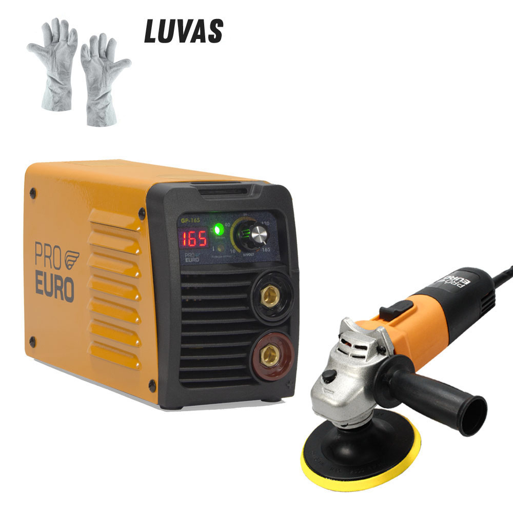 Máquina Inversora de Solda GP 165a Bivolt Compacta com Esmerilhadeira 127V e Luva de Couro Pró Euro