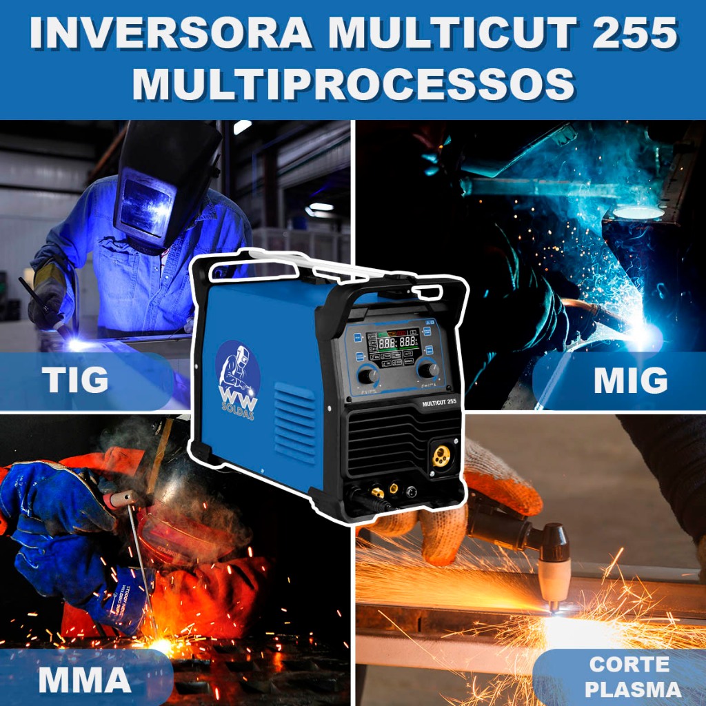 Máquina Inversora De Solda Mig Com ou Sem Gás, Tig, MMA E Corte Plasma Multicut 255 250A 220V