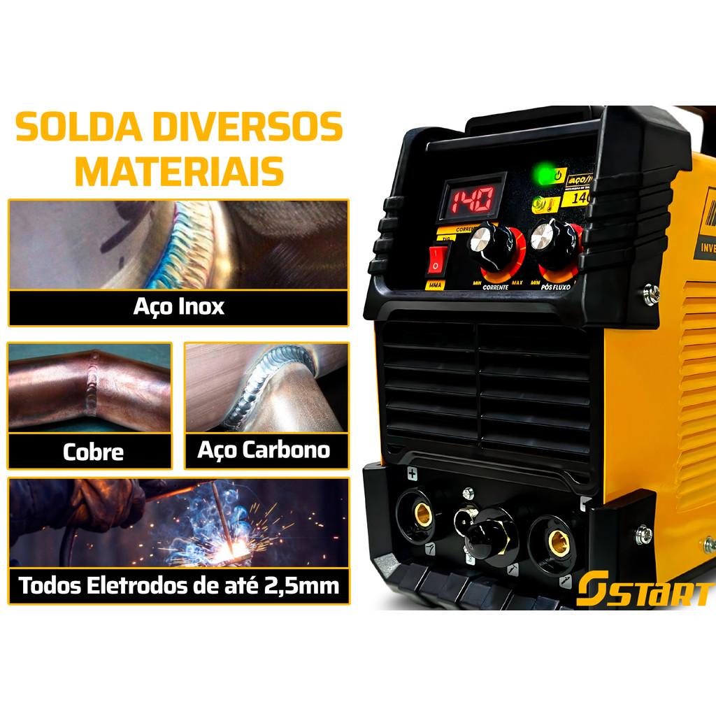 Maquina Inversora Solda 140a Mma Tig Aço Inox Cobre Titânio