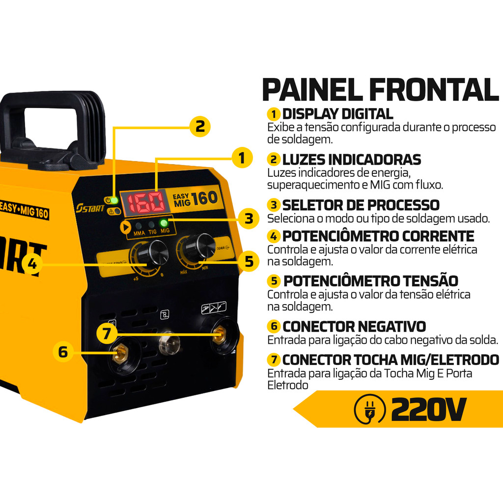 Maquina Inversora Solda 220v Easy Mig Tig 120 Máscara Eletrodo + Acessórios