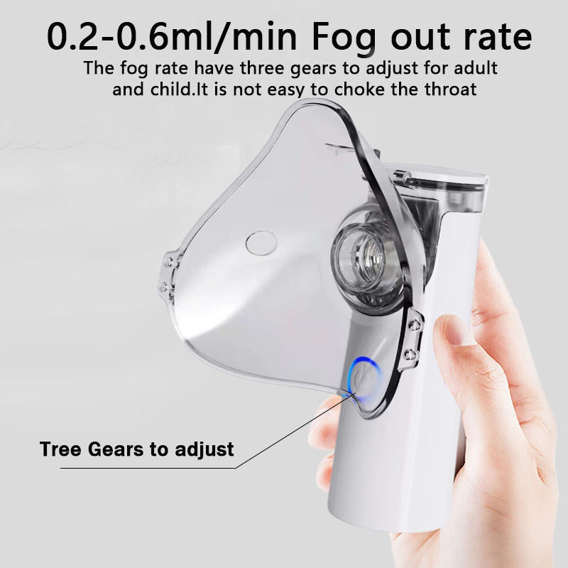 Especificação do produto: 1. Identificação do produto: Nome do produto: Máquina Nebulizador Modelo/Número do produto: Categoria: Saúde > Suprimentos Médicos > Cuidados Nasais 2. Descrição Geral: Tecnologia de atualização de malha Super silenciosa. O nebulizador utiliza tecnologia de MESH micro porosa para criar névoa fina e fresca. Operação silenciosa praticamente, operação silenciosa, operação praticamente sem ruído, nível de ruído tão baixo quanto 25 dB. Nebulizador doméstico Ideal. Este é projetado para uso doméstico fácil de operar sem risco e seguro você usará em sua casa. Tamanho portátil e desligamento automático. Leve e portátil, fácil de transportar no bolso, bolsa, bolsa de computador, para que possa ser usada a qualquer hora e em qualquer lugar. O dispositivo desliga automaticamente após a falta de água. Modo de pulverização de duas névoas pode alterar livremente. Operação silenciosa, partículas de micrômetros, compartimento de medicamentos grande, menos resíduos de medicamentos, equipamentos de uso duplo USB+ bateria, é fácil de levar consigo. 3. Características Técnicas 3.1 Hardware Dimensões: 12x5x4cm Peso: 215g Material: ABS Cor: Branco 3.2. Parâmetros técnicos: Tensão de entrada: AC 100-240V 50/60Hz tensão de saída: DC 5V 1-2A Taxa de pulverização: ≥0,2ml/min Temperatura máxima de medicina: 90℃ Tamanho da partícula aerossol 3-5μm Capacidade de enchimento recomendada: Máx.12ml / Min. 1ml Potência nominal: 0,5A ± 15% Frequência de oscilação: 113KHz ± 10% Frequência ultrassônica: 108±5KHZ Volume de som de som: 20.2db 3.3. Outros: Desligamento automático: desligamento automático após a pulverização. Nível de segurança: Fonte de alimentação interna com dispositivo do tipo BF específico. Modo de alimentação: (2 pilhas alcalinas AAA) ou adaptador de energia AC 4. Embalagem e conteúdo: -Unidade principal. -Máscara para adultos (grande) -Máscara para crianças (média) -Bocal de mordida. -Cabo de carregamento USB. -Manual de instruções.