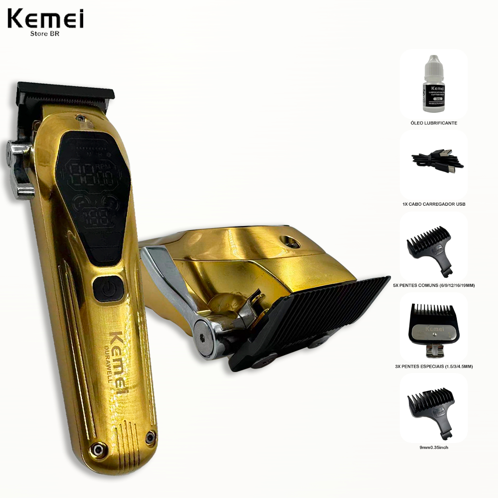 Máquina profissional Kemei KM-1698 aparador de cabelo de 9000 RPM cortador de cabelo recarregável