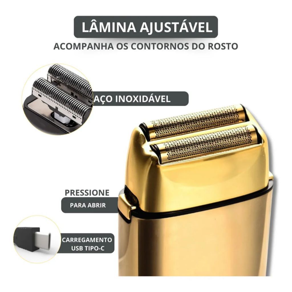 | Máquina shaver Barbeador Elétrico Kemei Original Dourado Recarregáv... este produto | R$ 139,99 | 26% | 5.0/5 | — |