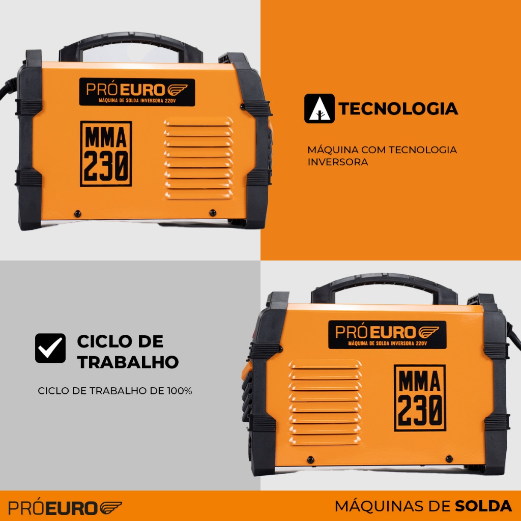 Máquina Solda Inversora Portátil MMA 230 220v Start Rápido Pró Euro