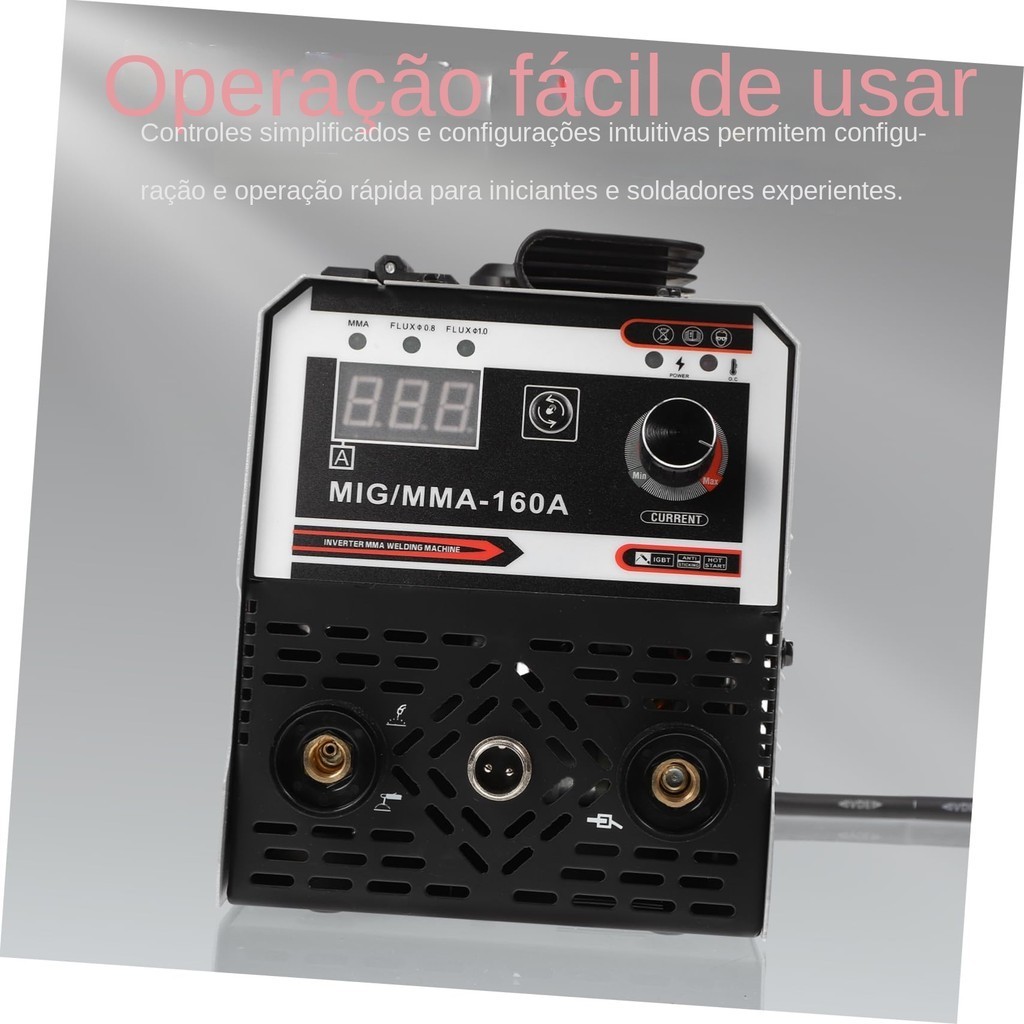 Máquina de Solda Inversora 220V Compacta MIG Sem Gás MIG/MMA-160A 60Hz Proteção Escudo Solda Possui um dos métodos mais antigos e eficientes de soldagem, o arco manual é o mais adequado quando se trata de solda nos locais de trabalho, nas indústrias ou até mesmo domiciliar. Permite o acabamento de soldagem em vários tipos de aço e outros metais ferrosos com extrema eficácia. Fácil de se manusear e leve, compacta e de transporte rápido, com opção de configuração para cada tipo de diâmetro de eletrodo e espessura de placa a soldar. - Especificações Técnicas: :: Tipos de Processo: MIG :: Tensão: 220V :: Frequência: 60Hz :: Corrente de Entrada: 15A :: Tensão no vazio: 60V :: Eficiência: 85% :: Fator de Força: 0.93 :: Corrente Máxima de Solda: MIG 40-160A :: Ciclo de Trabalho: 100@40% • 80@100% :: Classe de Isolação: IP21S :: Classe de Proteção: F :: Grau de proteção do gabinete: IP21 :: Diâmetro do arame: de 0.8 até 1mm ::Espessura de soldagem: 3,2 mm :: Dimensões: 280*145*235MM :: Peso: 7kg - Conteúdo da embalagem: :: 1 Máquina de Solda Inversora MIG :: Tocha Seca Embutida MIG :: Garra Negativa :: Escudo de Solda :: Escova de Aço Carbono :: Alça para Transporte