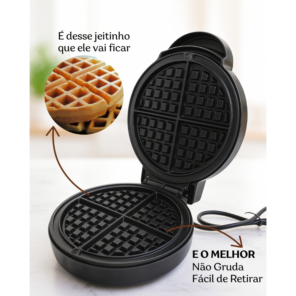 Máquina Waffle Elétrica Portátil Panqueca Automático maker wafer Antiaderente Assar Premium 1000W