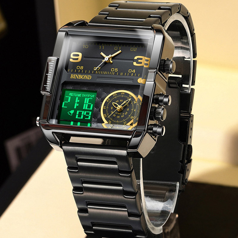 【Marca de Luxo】BINBOND B3332 Relógio De Quartzo Masculino De Luxo Quadrado À Prova D'água B911 B6575